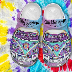 Merchidea Hippie Heart Soul Of Gypsy Croc Shoes Women- Hippie Bus Free Spirit Purple Shoes Croc Clogs Birthday Girl