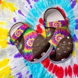 Merchidea Peace Rainbow Hippie Soul Leather Croc Shoes Gift Women- Hippie Trippy Rainbow Shoes Croc Clogs Birthday Gift