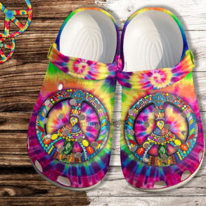 Merchidea Peace Symbol Hippie Croc Shoes Gift Men Women- Rainbow Hippie Love Peace Shoes Croc Clogs Birthday Girl