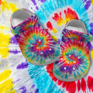 Merchidea Hippie Tie Dye Croc Shoes- Hippie Trippy Rainbow Shoes Croc Clogs Customize Gift Birthday