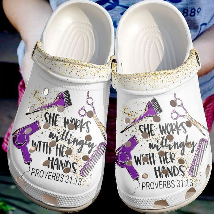 Merchidea Hairstylist She Works Willingly Clog Shoes