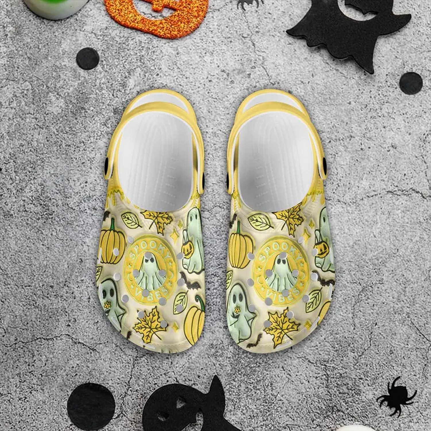 Merchidea Cute Spooky Vibes Happy Halloween Crocs Crocband Clogs Shoes Comfortable For Men Women and Kids