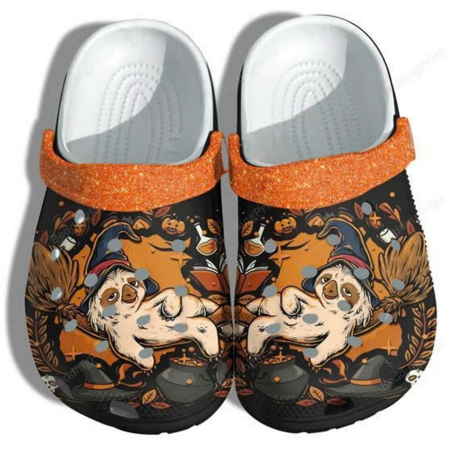 Merchidea Lazy Sloth Witch Halloween Pumpkin Animal Crocs Crocband Clogs Shoes Comfortable For Men Women and Kids