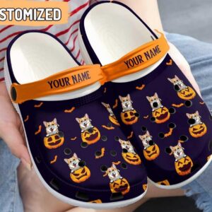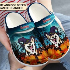 Merchidea Funny Corgi Happy Halloween With Pumpkin Crocs Crocband Clogs Shoes Comfortable For Men Women and Kids