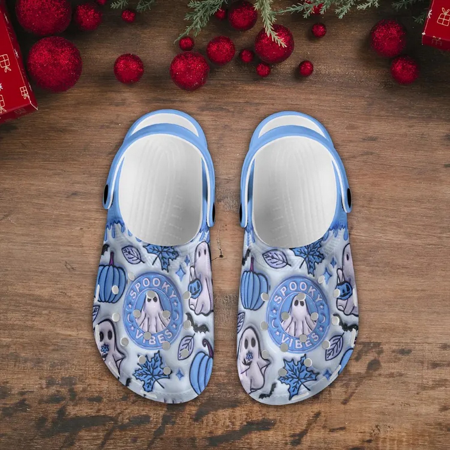 Merchidea Cute Spooky Vibes Happy Halloween Crocs Crocband Clogs Shoes Comfortable For Men Women and Kids
