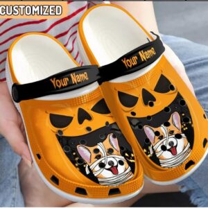 Merchidea Little Corgi Cosplay Mummy In Halloween Pumpkin Crocs Crocband Clogs Shoes Comfortable For Men Women and Kids
