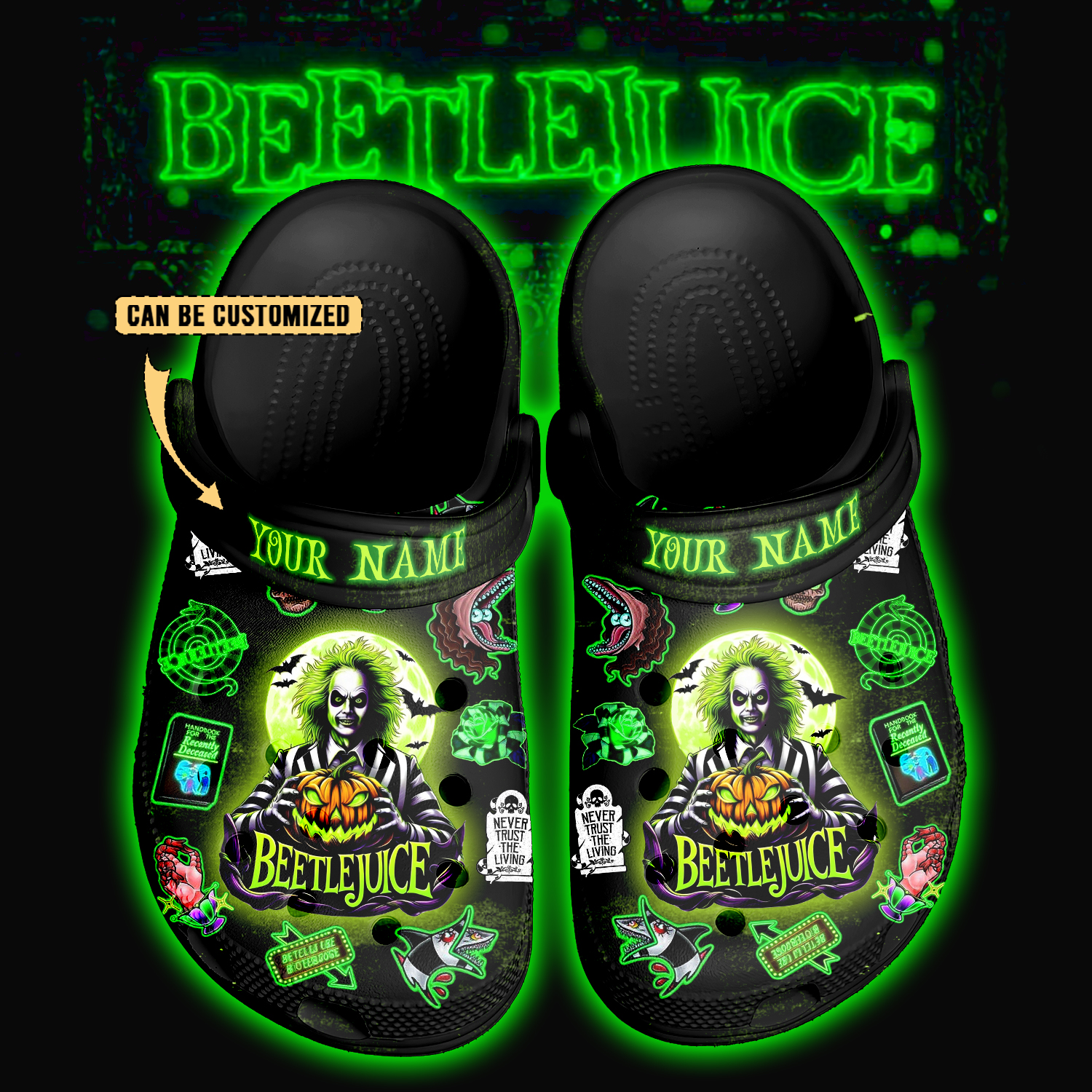 Merchidea Beetlejuice x Halloween Crocs Crocband Clogs Shoes Comfortable For Men Women and Kids
