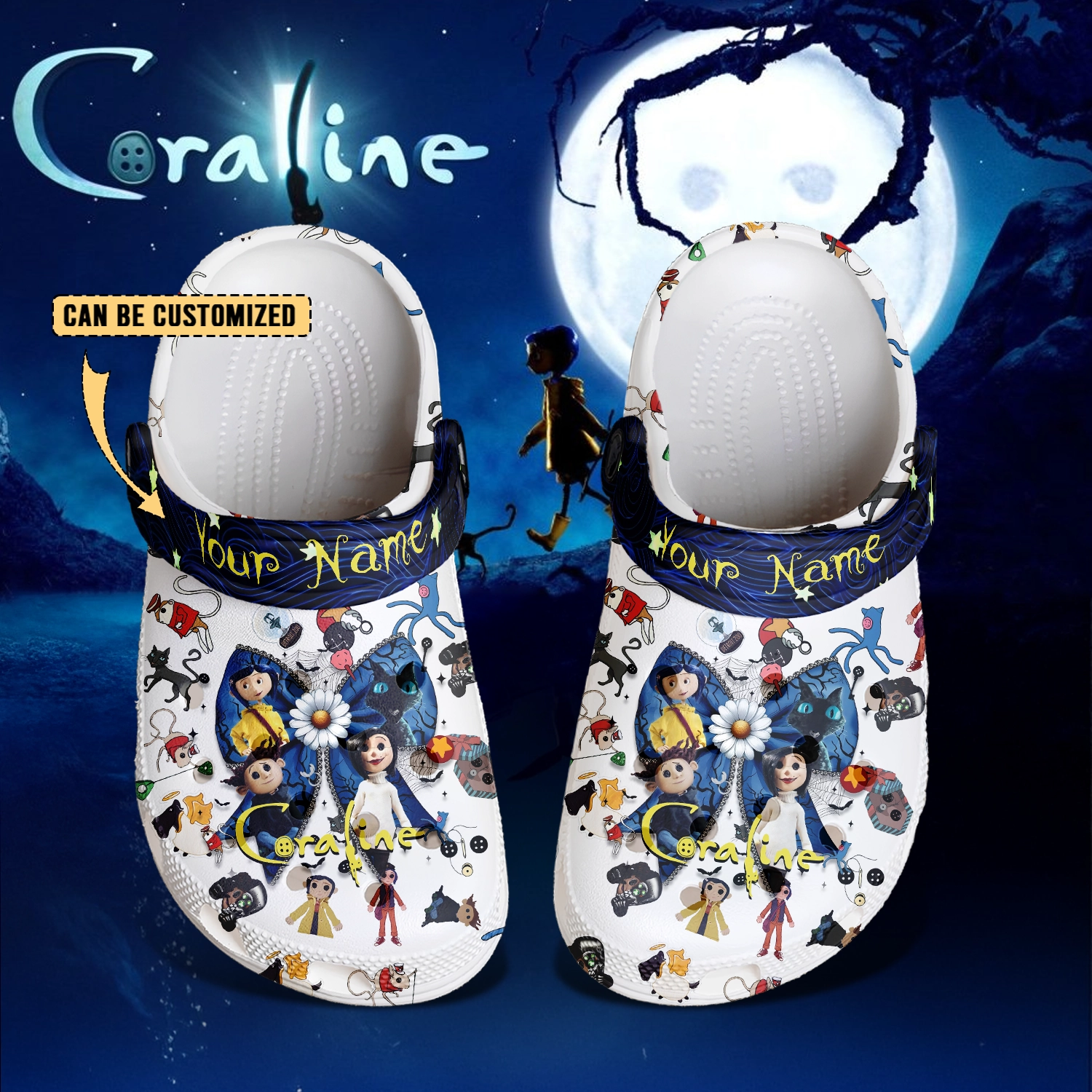 Merchidea Coraline x Halloween Crocs Crocband Clogs Shoes Comfortable For Men Women and Kids
