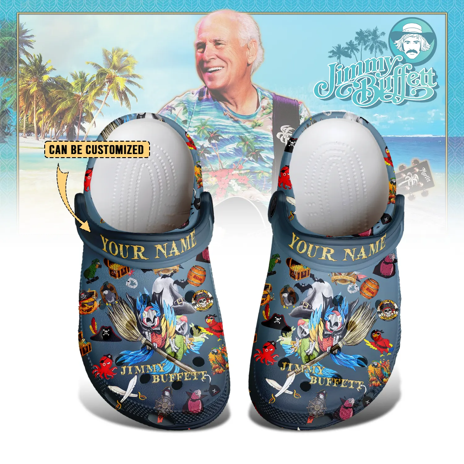 Merchidea Jimmy Buffett x Halloween Crocs Crocband Clogs Shoes Comfortable For Men Women and Kids