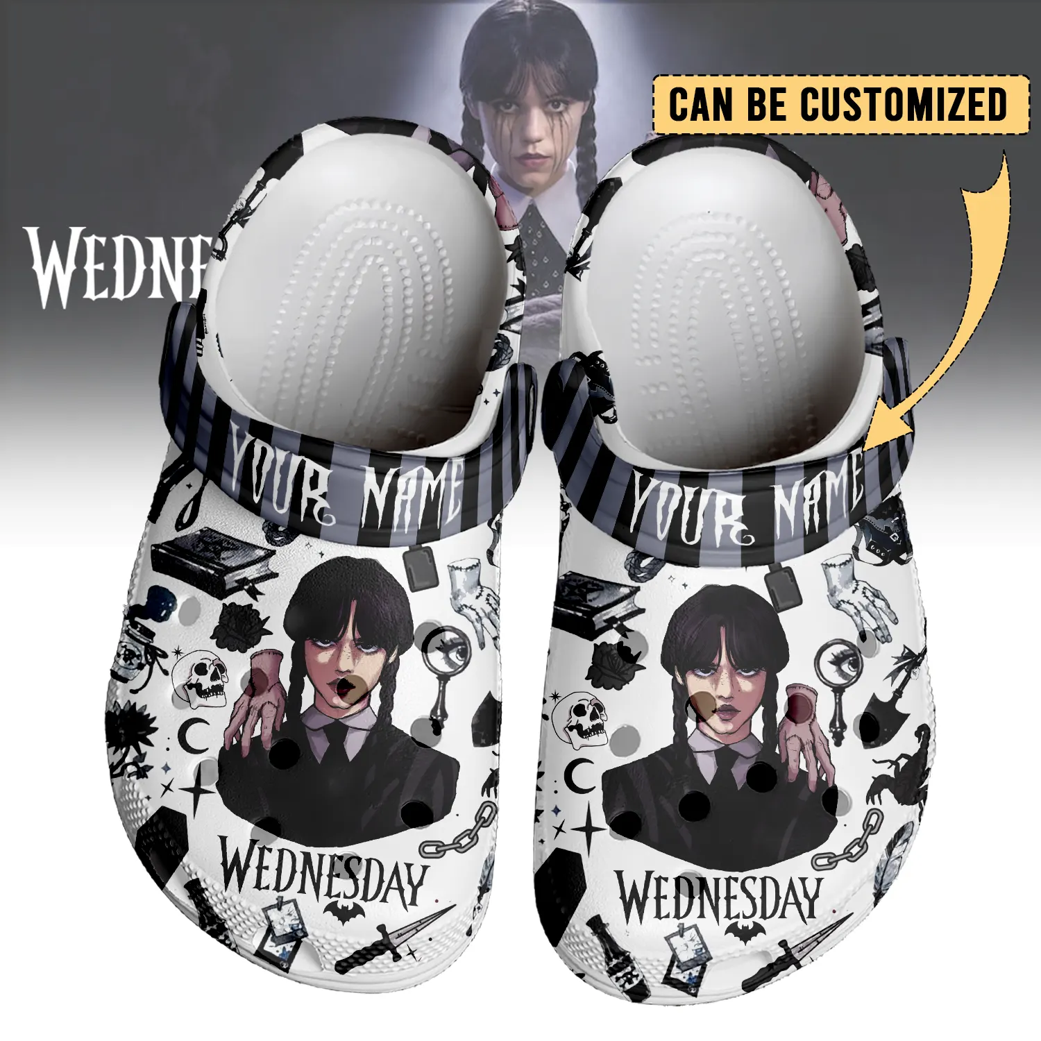 Merchidea Wednesday x Halloween Crocs Crocband Clogs Shoes Comfortable For Men Women and Kids