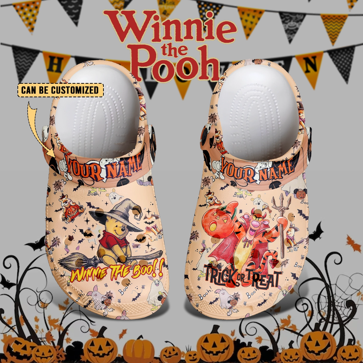 Merchidea Winnie The Pooh x Halloween Crocs Crocband Clogs Shoes Comfortable For Men Women and Kids
