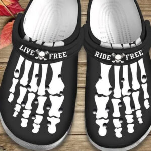Merchidea Live Free Ride Free Motorcycling Skeleton Men Shoes Cute Shoes Rubber clog Shoes Comfy Footwear
