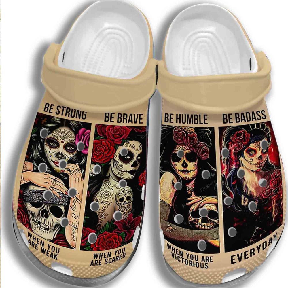 Merchidea Sugar Skull Girl Be Strong Humble Be Brave Badass Gift For Lover Rubber clog Shoes Comfy Footwear