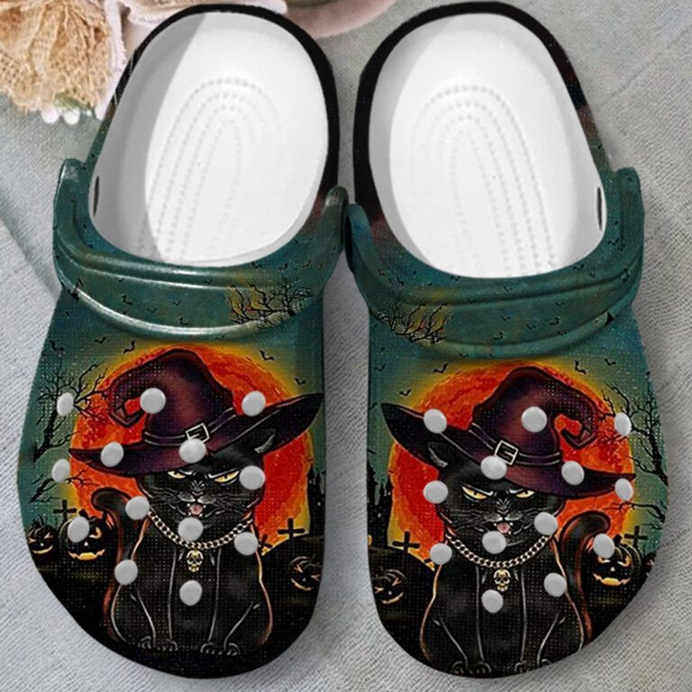 Merchidea Angry Black Cat At Night Shoes Clogs Halloween Gifts For Men Women