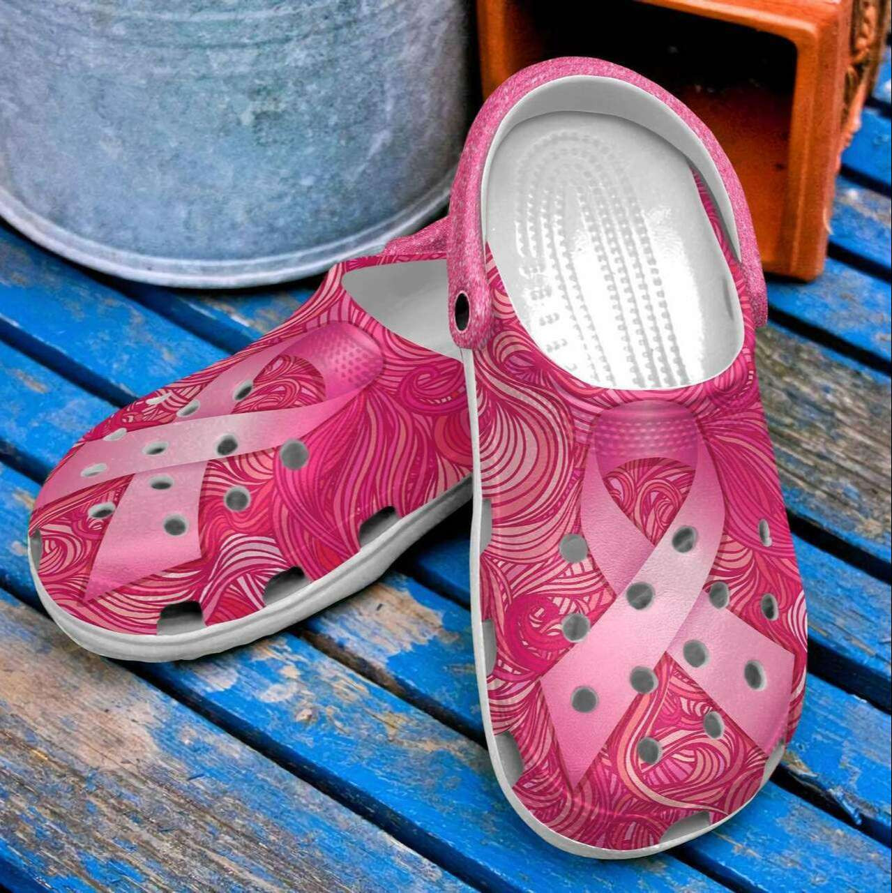 Merchidea Breast Cancer Awareness Ribbon Crocband Clog Shoes