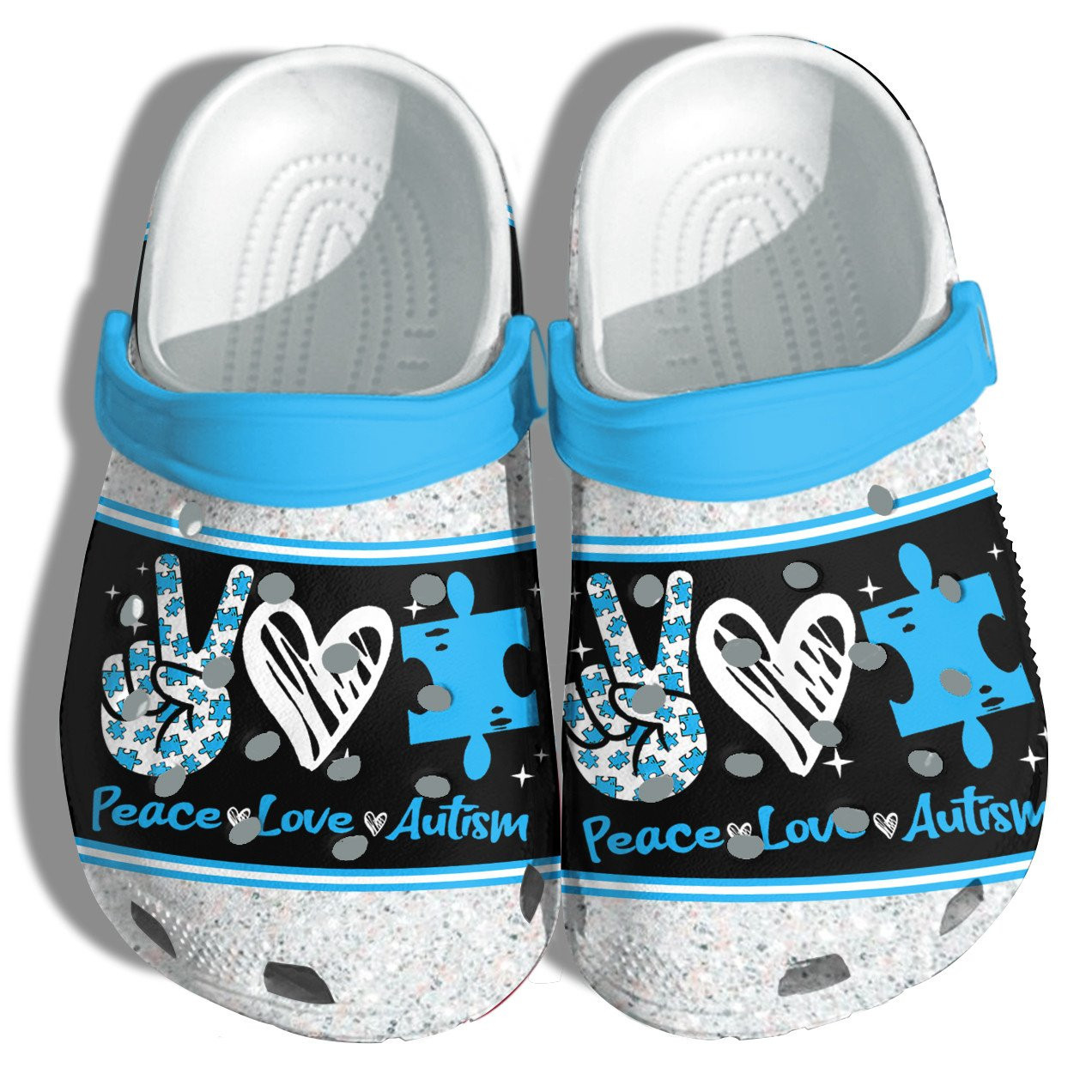 Merchidea Peace Love Light Autism Puzzel Shoes – Autism Awareness Be Kind Blue Shoes Croc Clogs Gifts Son Daughter