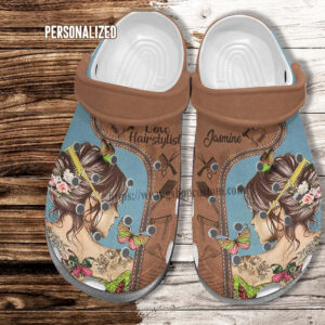 Merchidea Girl Hair Stylist Vintage Croc Shoes Birthday Daughter- Hair Girl Butterfly Shoes Croc Clogs Customize