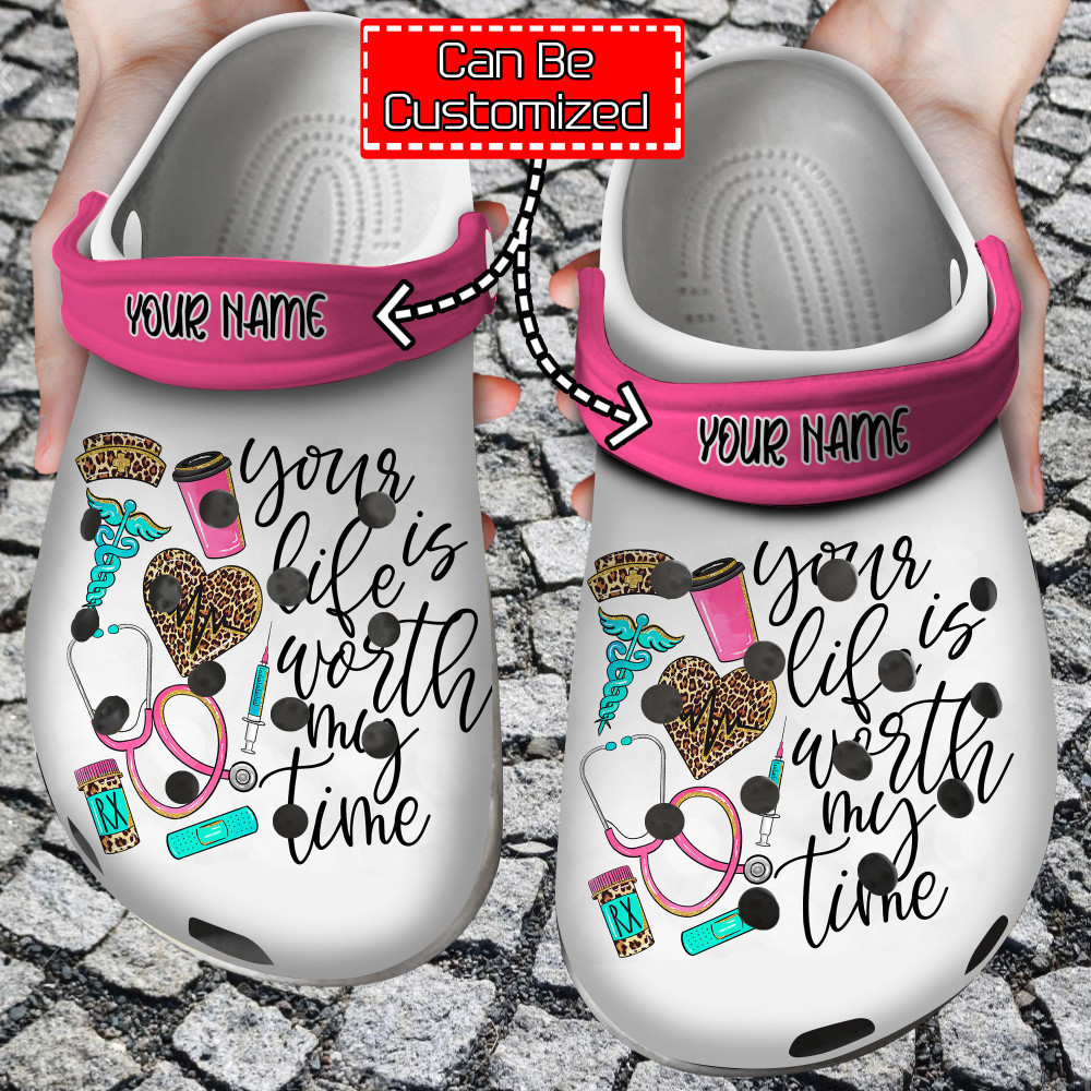 Merchidea Nurse – Personalized Your Life Is Worth My Time Nurse Leopard Clog Shoes For Men And Women