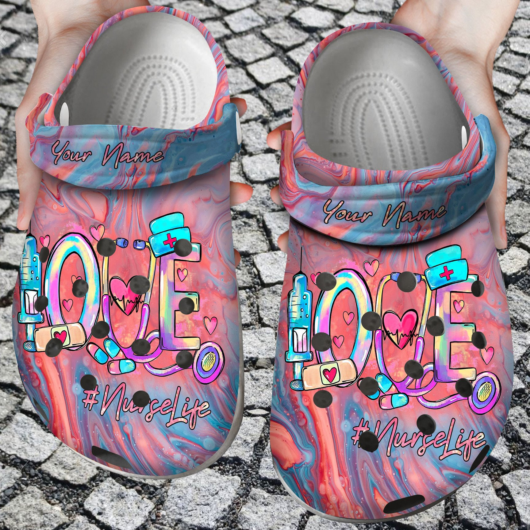 Merchidea Personalized Love Nurse Life Tie Dye clog Shoes Nurse