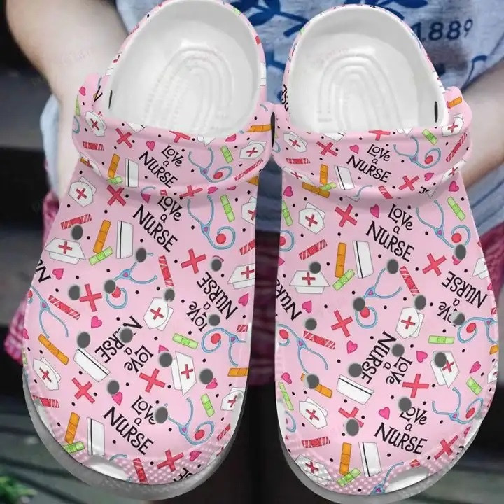 Merchidea Love A Nurse Pink Crocband Clog Shoes For Men Women
