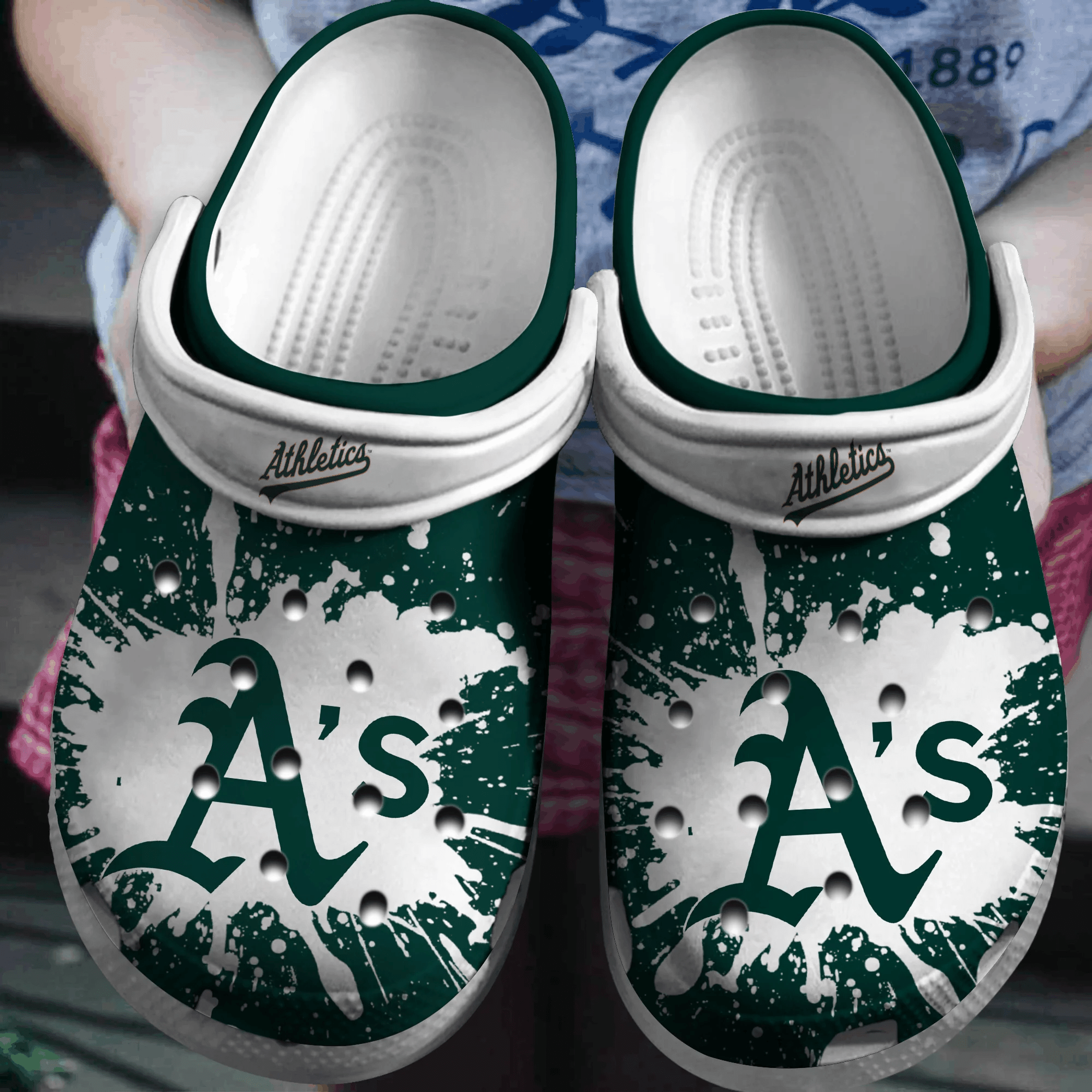Merchidea Oakland Athletics green yellow MLB Sport Crocs Clogs Crocband Shoes Comfortable For Men Women and Kids