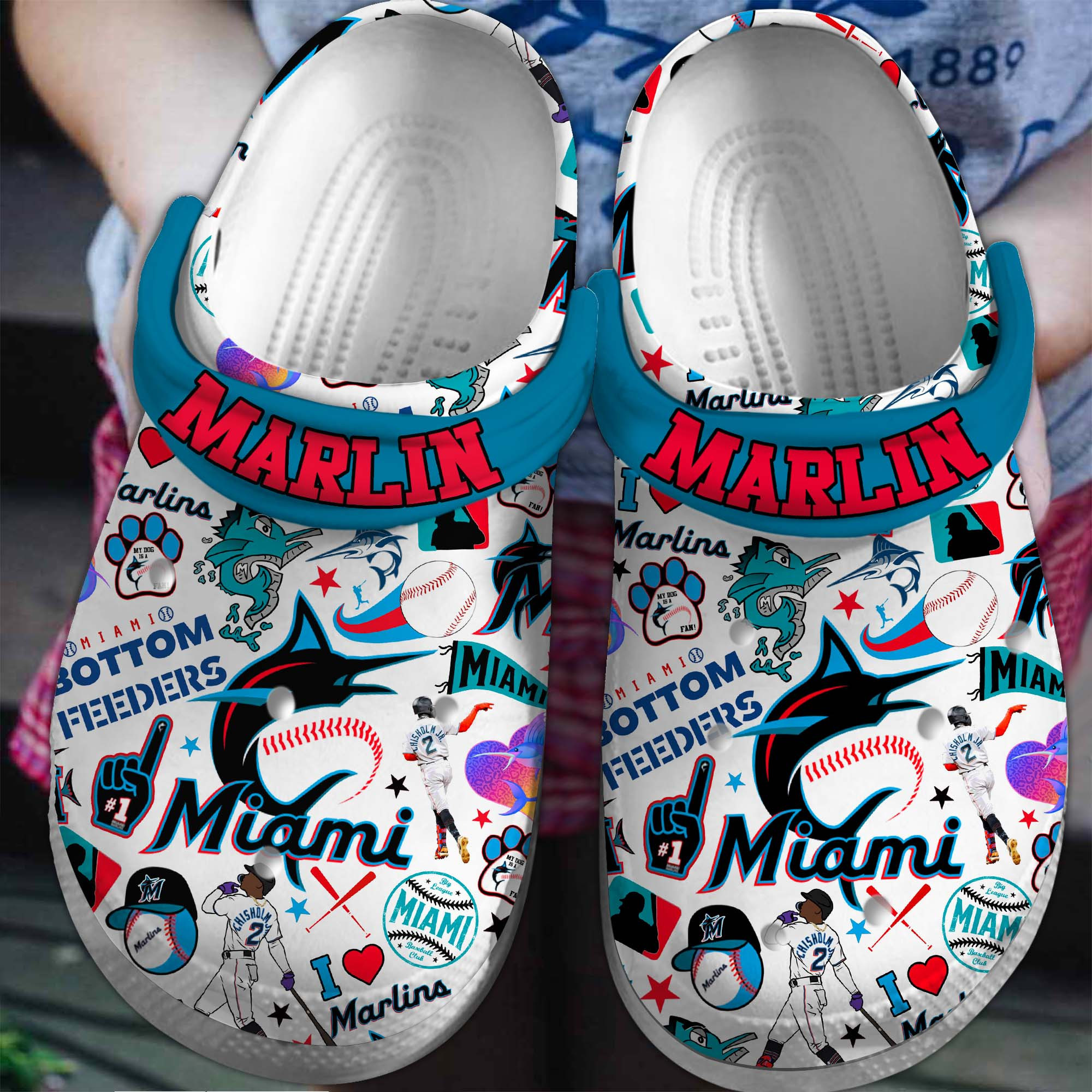 Merchidea Miami Marlins MLB Sport Crocs Crocband Clogs Shoes Comfortable For Men Women and Kids
