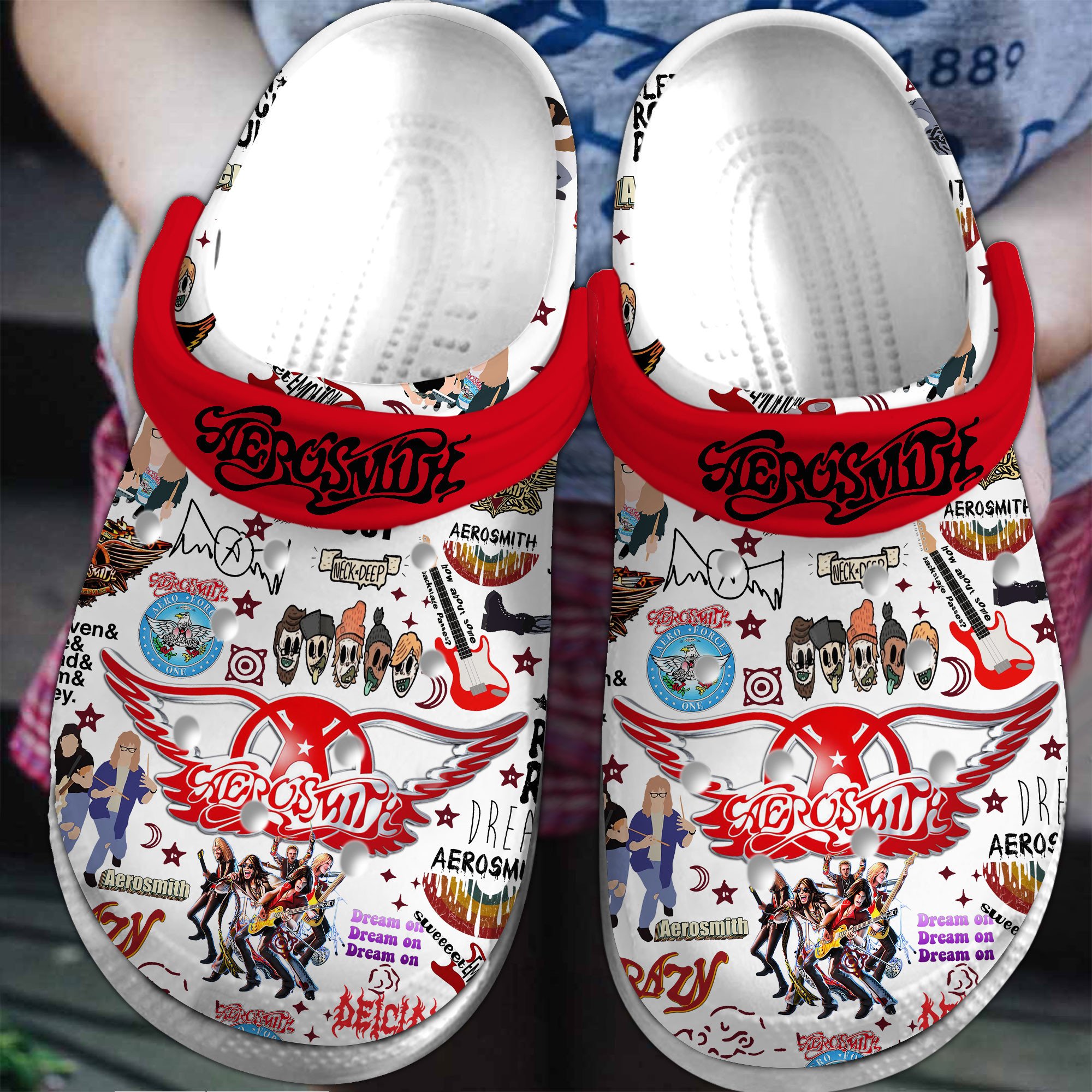Merchidea Aerosmith Music Crocs Crocband Clogs Shoes Comfortable For Men Women and Kids