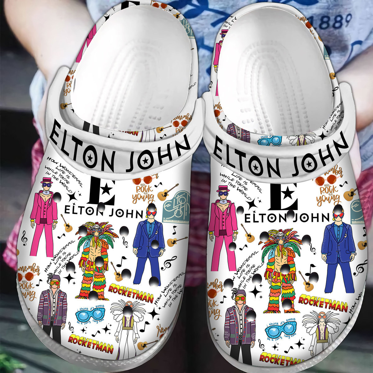 Merchidea Elton John Music Crocs Crocband Clogs Shoes Comfortable For Men Women and Kid