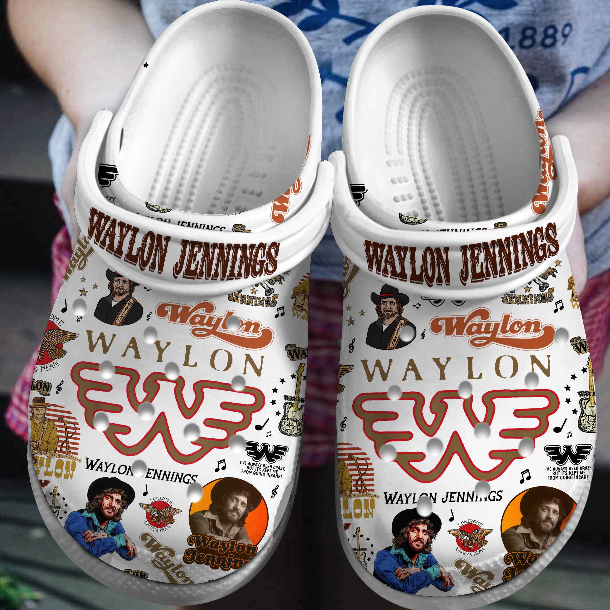 Merchidea Waylon Jennings Music Crocs Crocband Clogs Shoes Comfortable For Men Women and Kids