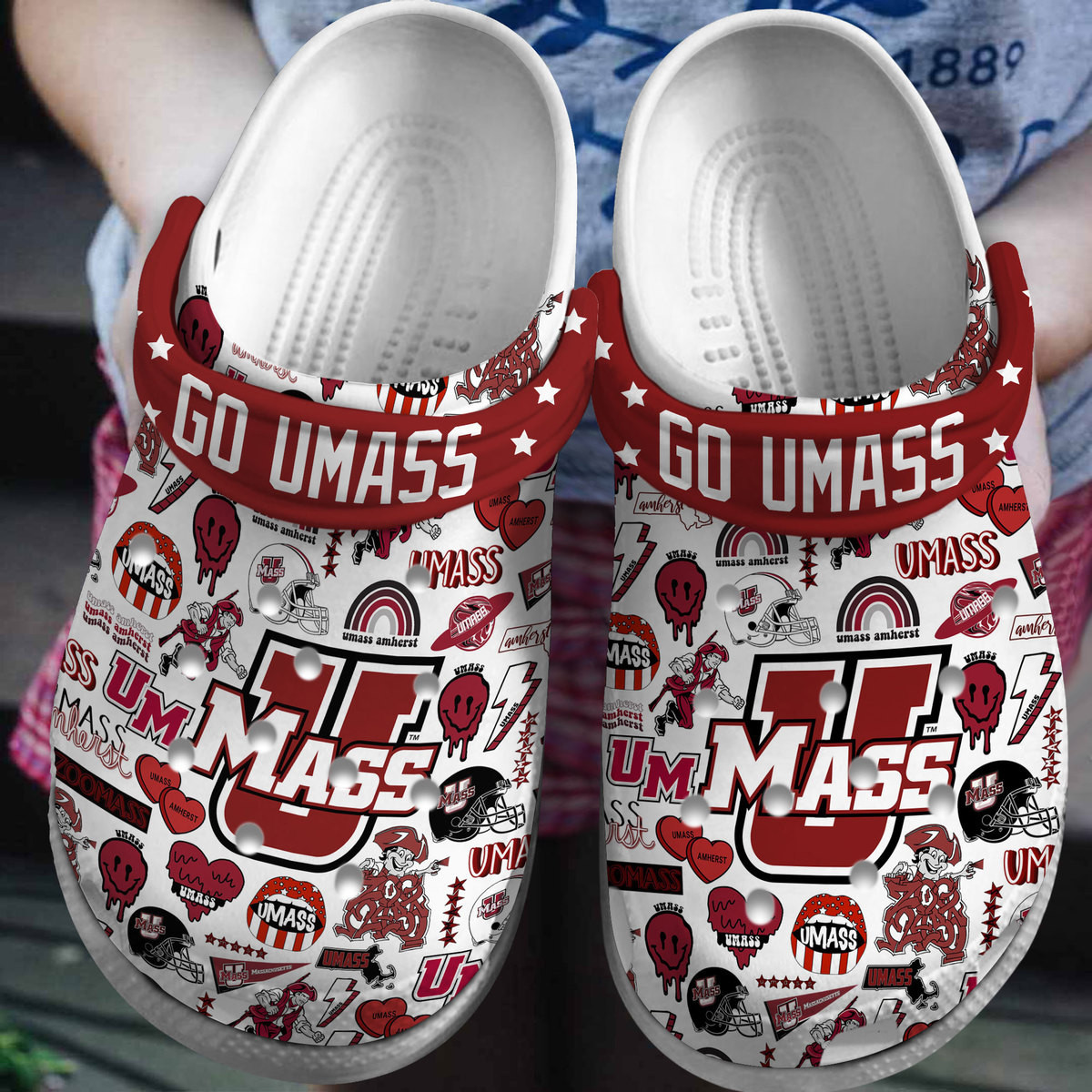 Merchidea Massachusetts Minutemen NCAA Sport Crocs Crocband Clogs Shoes Comfortable For Men Women and Kids