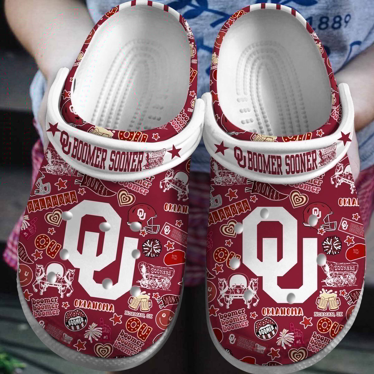 Merchidea Oklahoma Sooners NCAA Sport Crocs Crocband Clogs Shoes Comfortable For Men Women and Kids