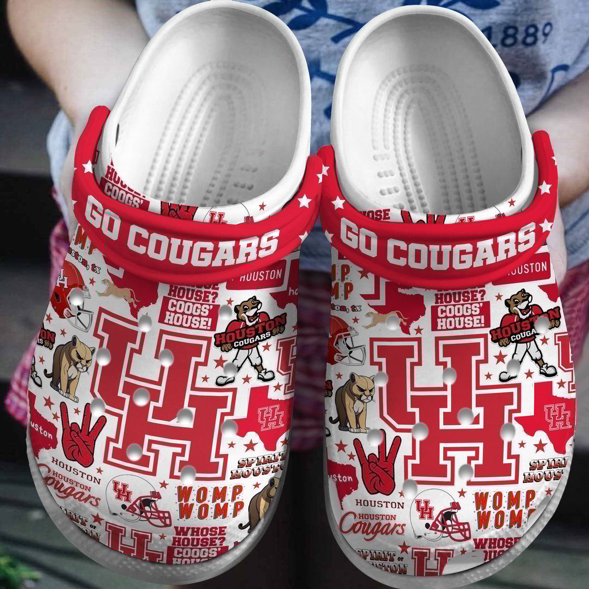 Merchidea Houston Cougars NCAA Sport Crocs Crocband Clogs Shoes Comfortable For Men Women and Kids