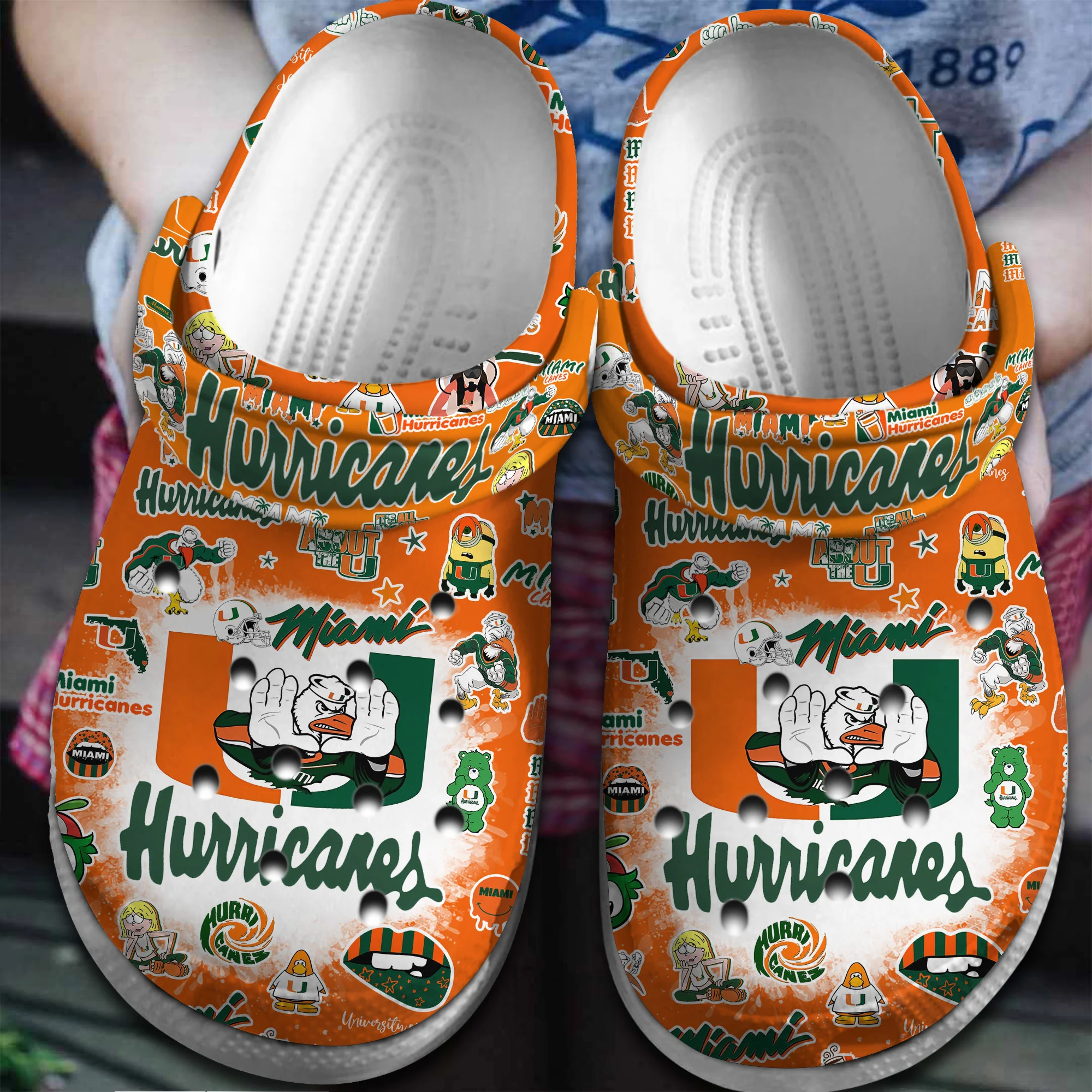 Merchidea Miami Hurricanes NCAA Sport Crocs Crocband Clogs Shoes Comfortable For Men Women and Kids