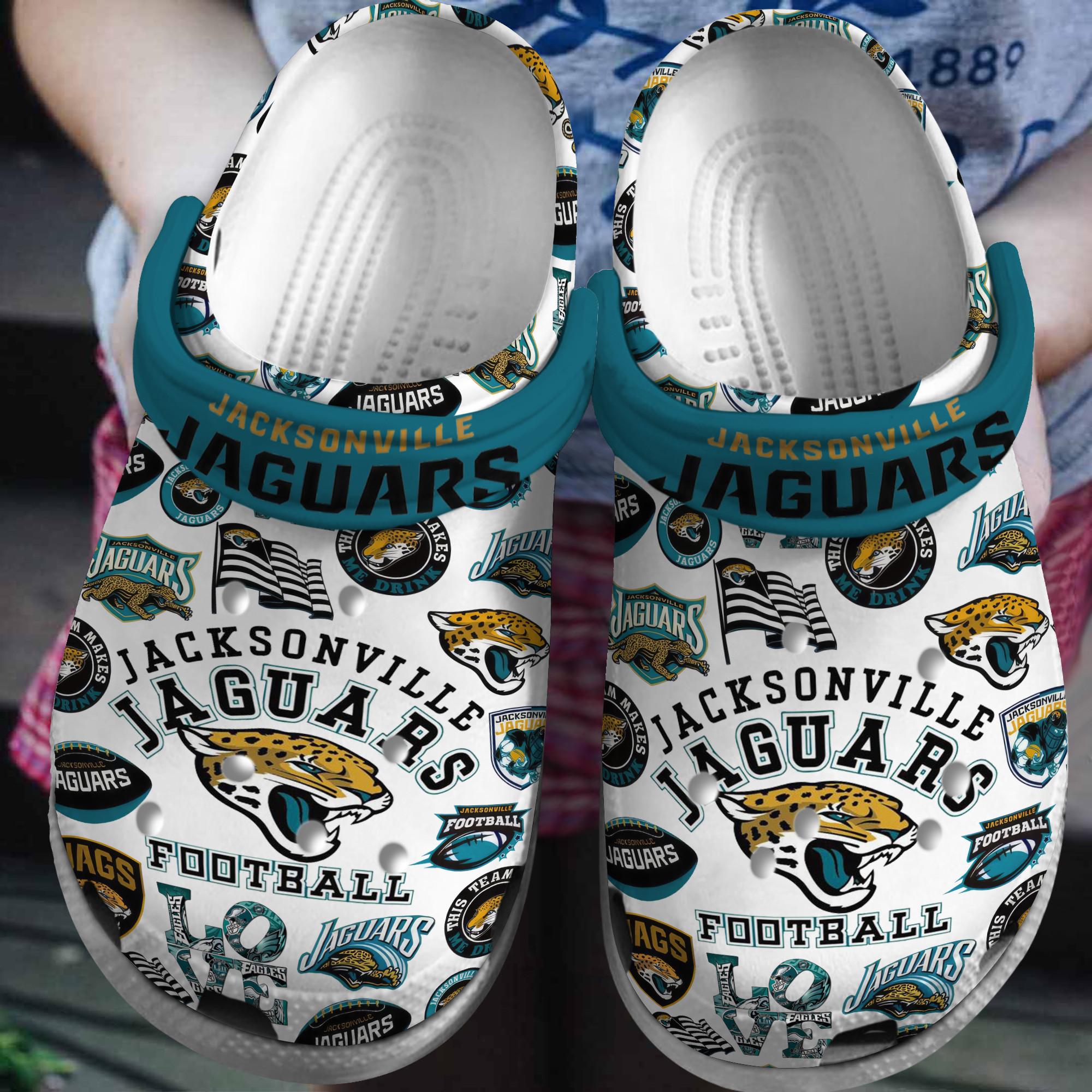 Merchidea Jacksonville Jaguars NFL Sport Crocs Crocband Clogs Shoes Comfortable For Men Women and Kids