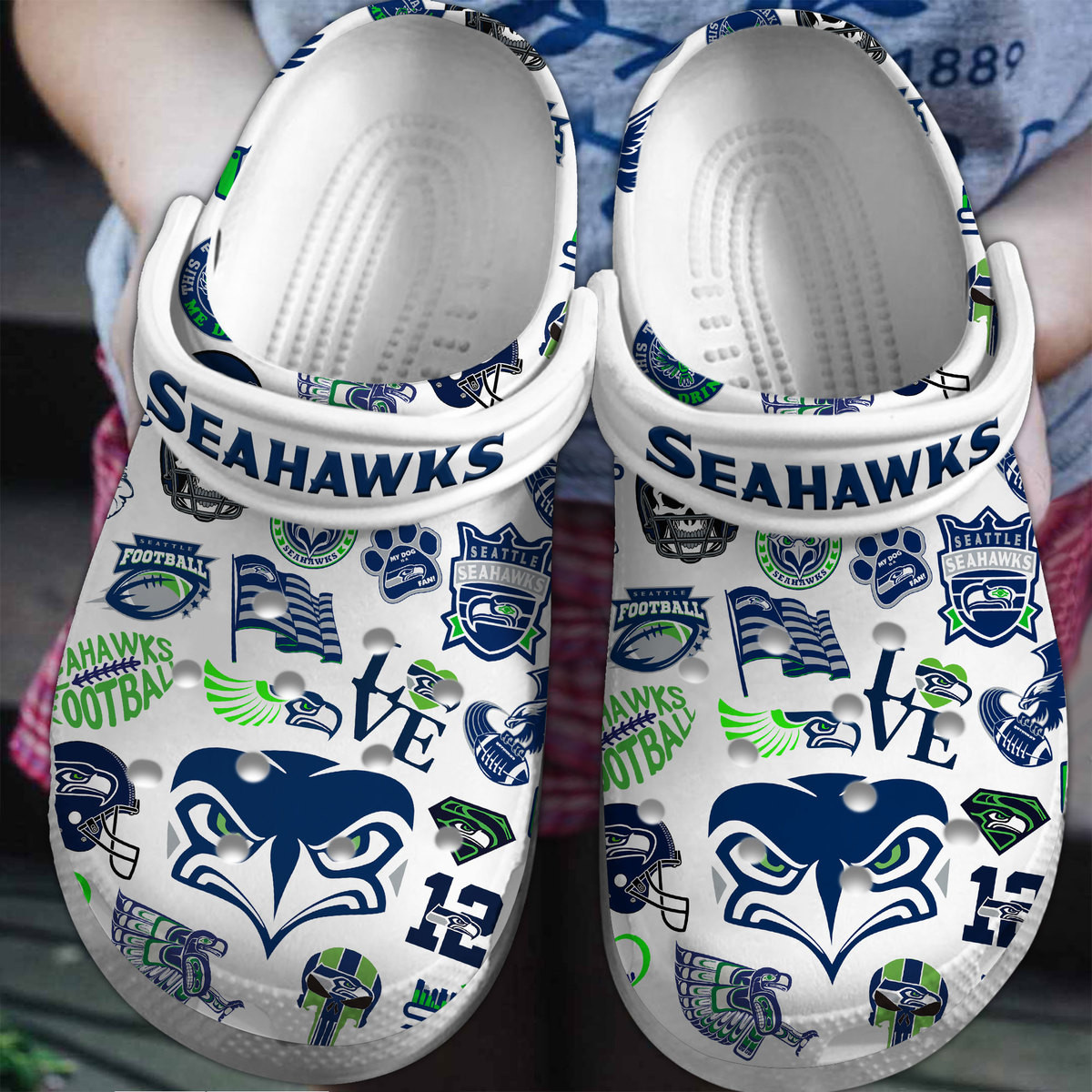 Merchidea Seattle Seahawks NFL Sport Crocs Crocband Clogs Shoes Comfortable For Men Women and Kids