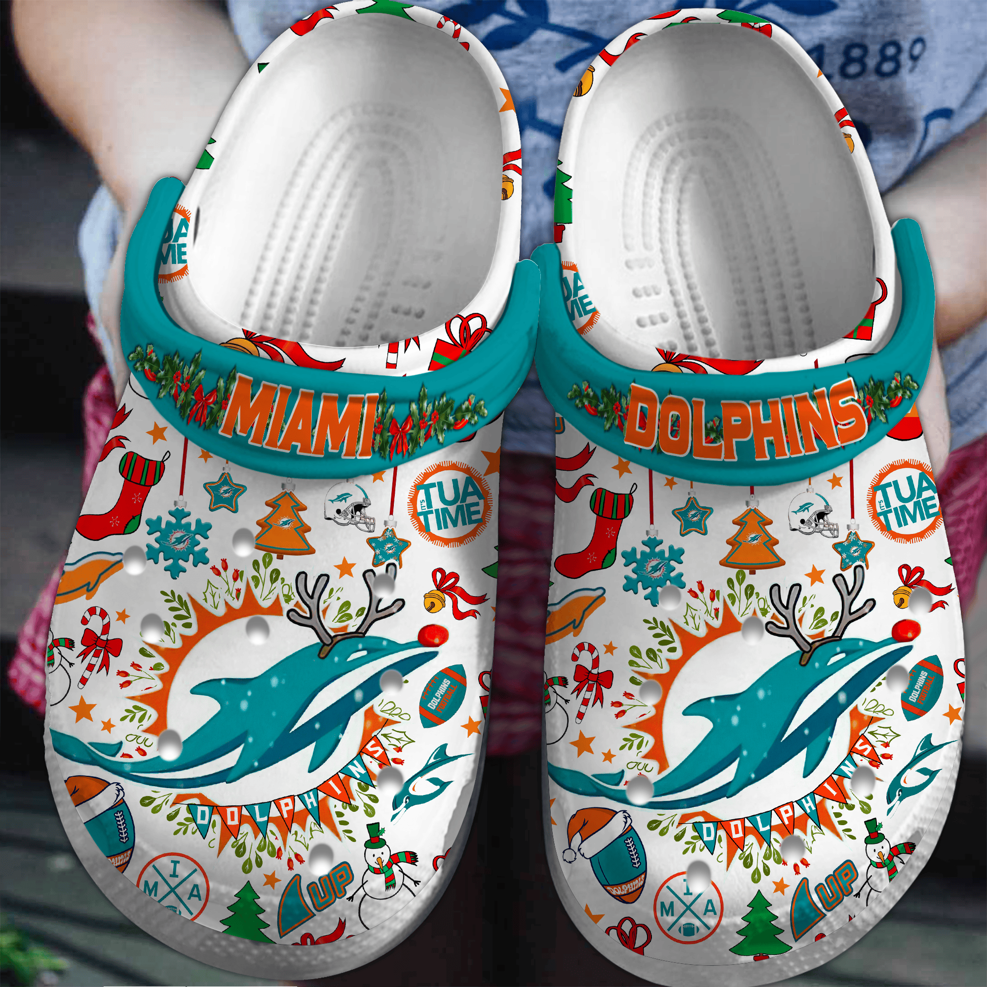 Merchidea Miami Dolphins NFL Sport Crocs Crocband Clogs Shoes Comfortable For Men Women and Kids