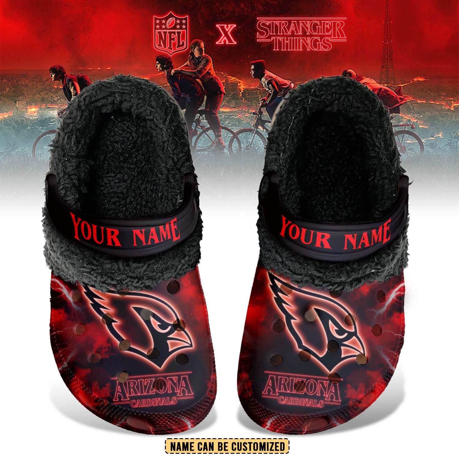 Merchidea Arizona Cardinals x Stranger Things Crocs Crocband Fleece Lined Clogs Shoes Comfortable For Men Women and Kids In Winter