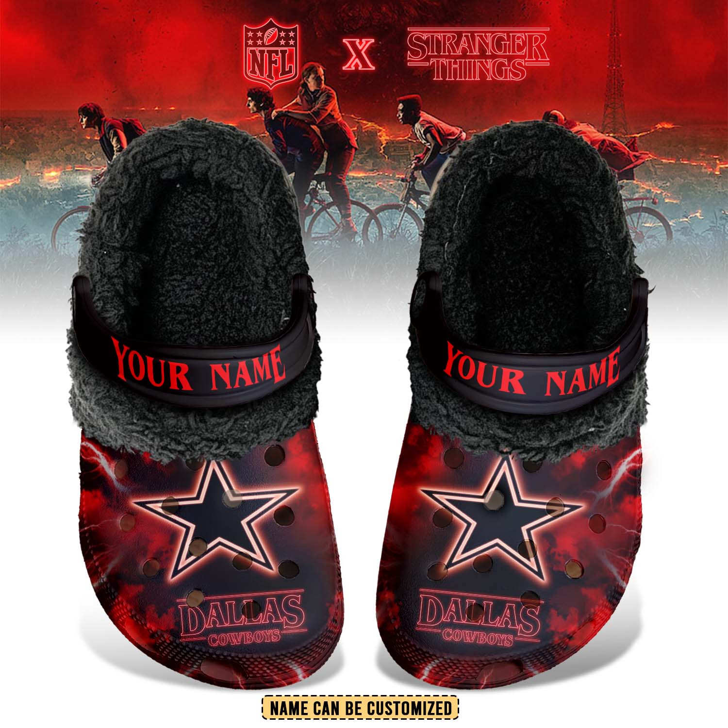 Merchidea Dallas Cowboys x Stranger Things Crocs Crocband Fleece Lined Clogs Shoes Comfortable For Men Women and Kids In Winter