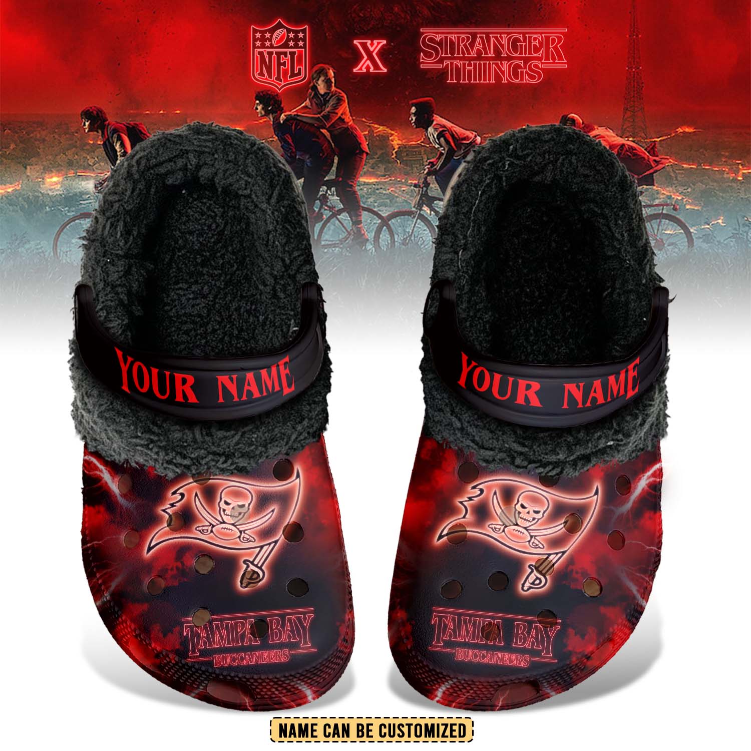 Merchidea Tampa Bay Buccaneers x Stranger Things Crocs Crocband Fleece Lined Clogs Shoes Comfortable For Men Women and Kids In Winter