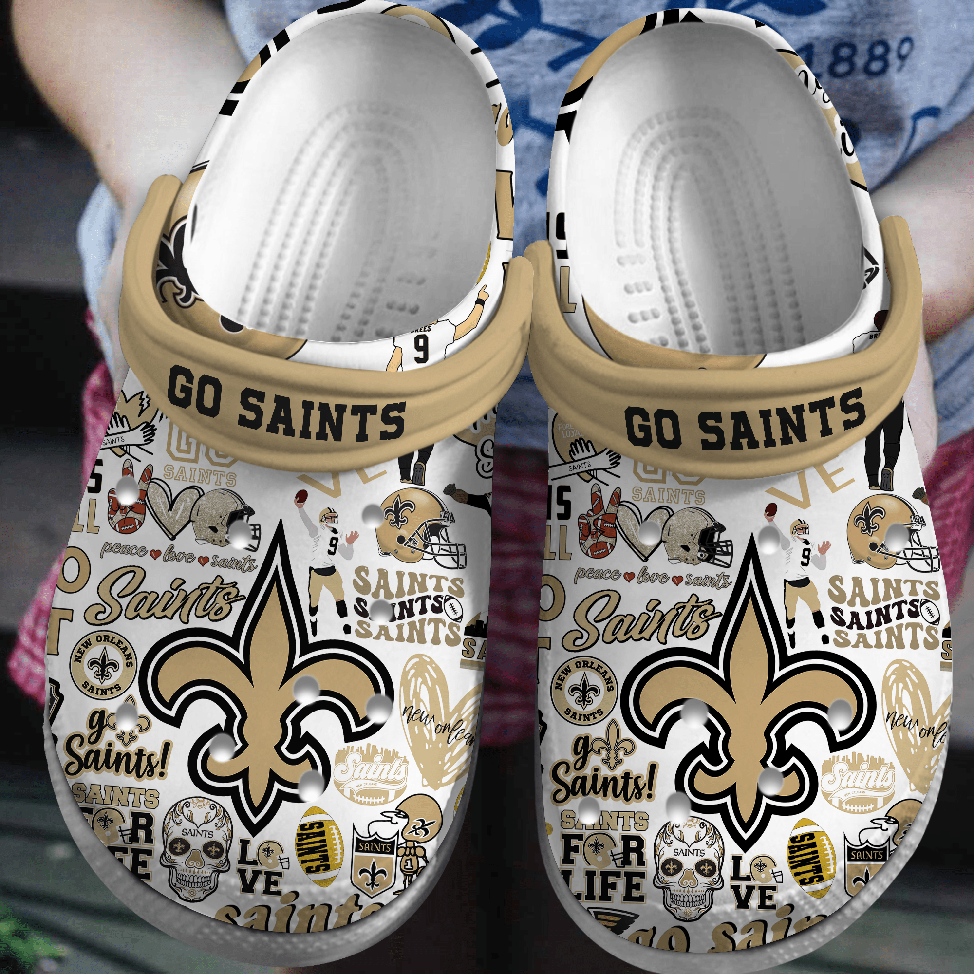 Merchidea New Orleans Saints NFL Sport Crocs Crocband Clogs Shoes Comfortable For Men Women and Kids