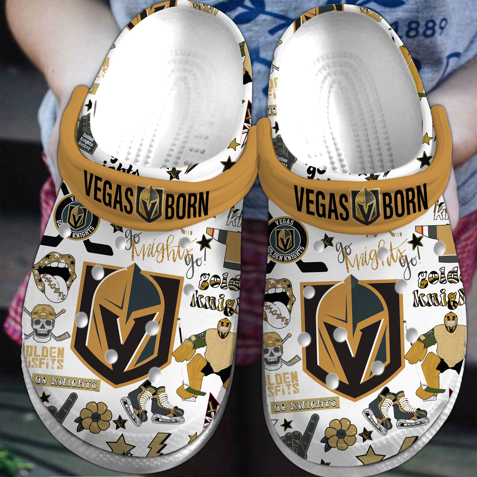 Merchidea Vegas Golden Knights NHL Sport Crocs Crocband Clogs Shoes Comfortable For Men Women and Kids