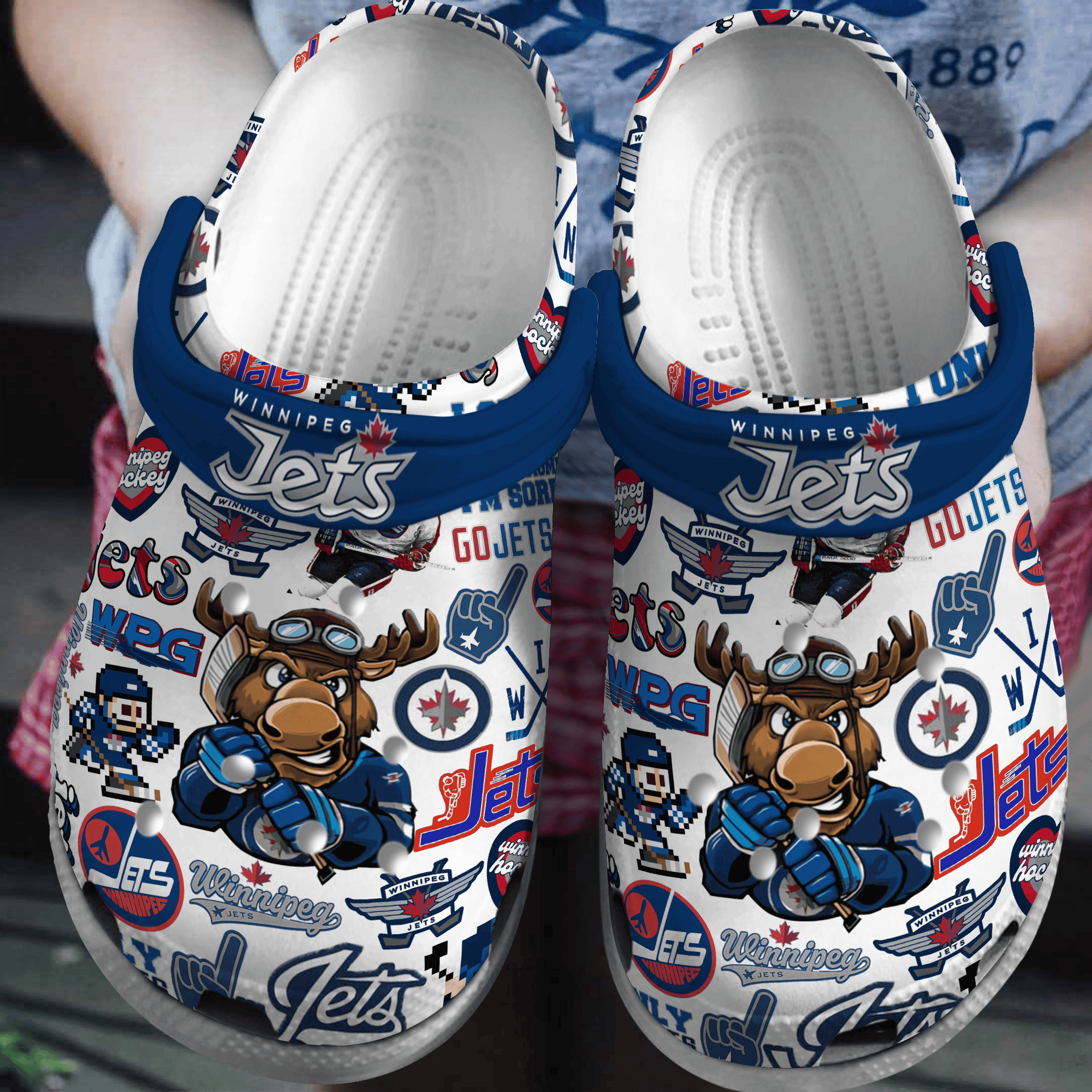 Merchidea Winnipeg Jets NHL Sport Crocs Crocband Clogs Shoes Comfortable For Men Women and Kids