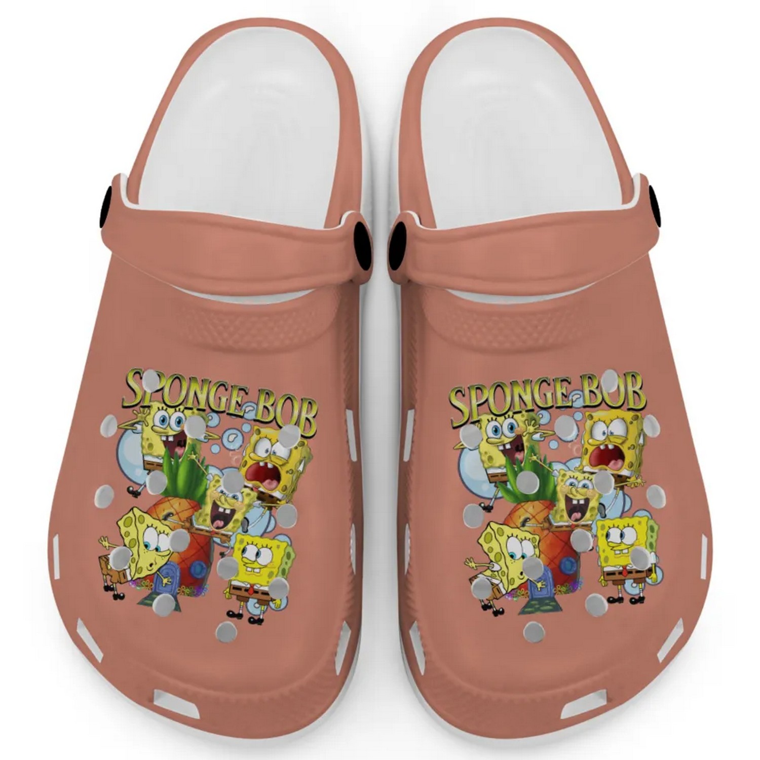 Merchidea Spongebob Squarepants Cartoon Burnt Orange Crocs Crocband Clogs Shoes Comfortable For Men Women and Kids