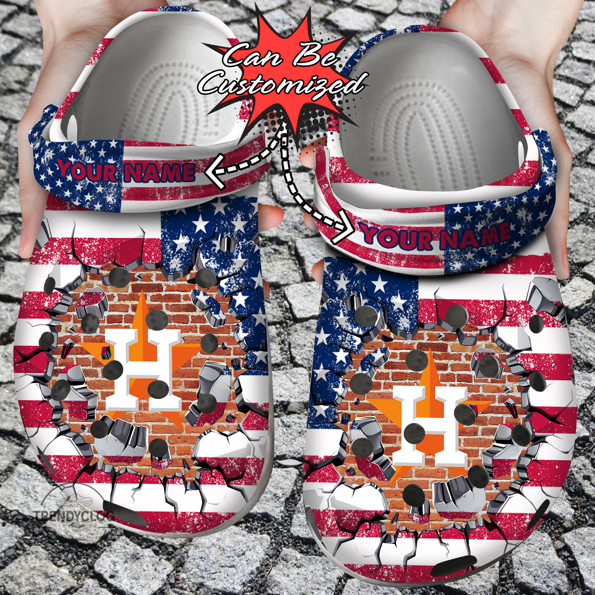 Merchidea Baseball Personalized HAstros American Flag Breaking Wall Clog Shoes