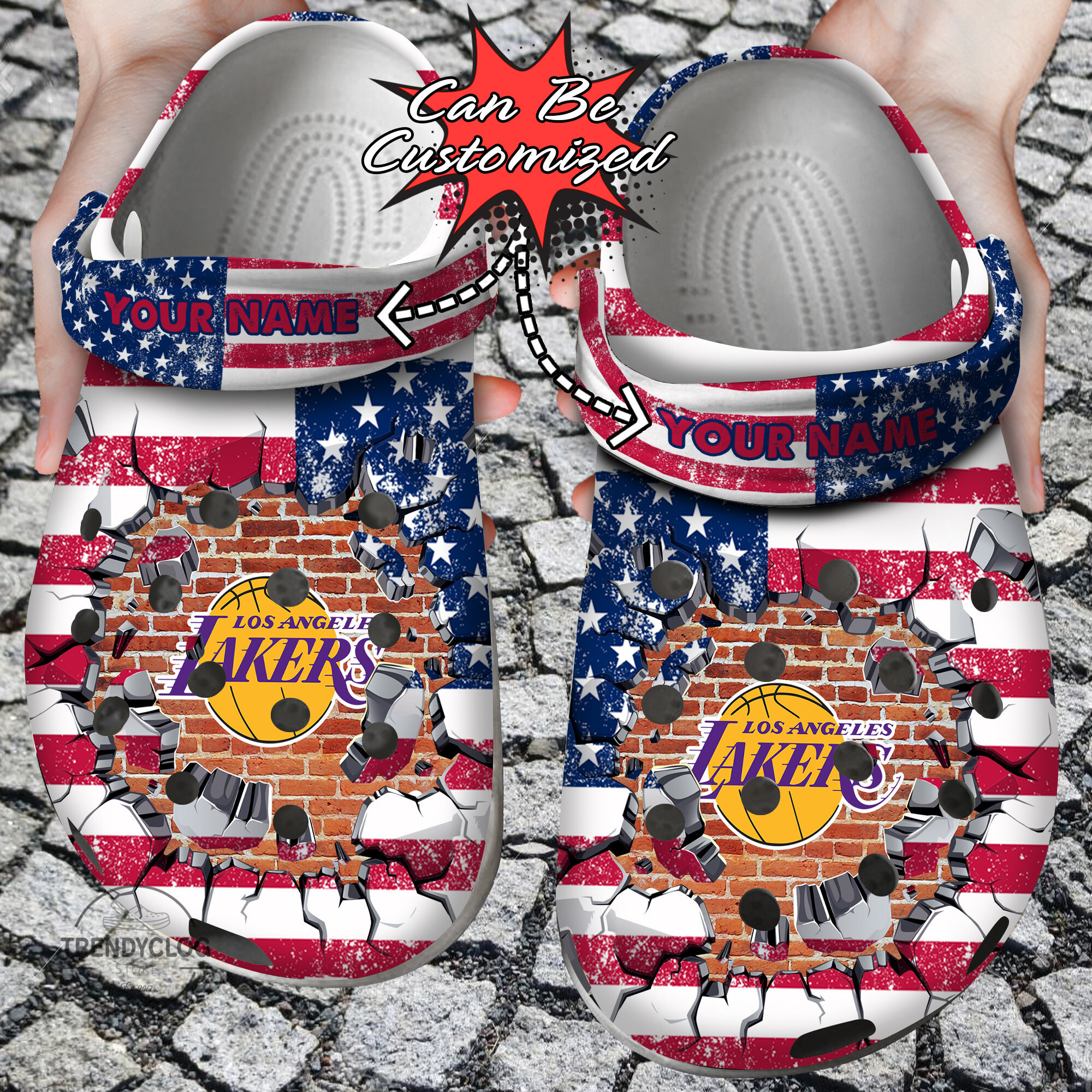 Merchidea Basketball Personalized TRaptors American Flag Breaking Wall Clog Shoes