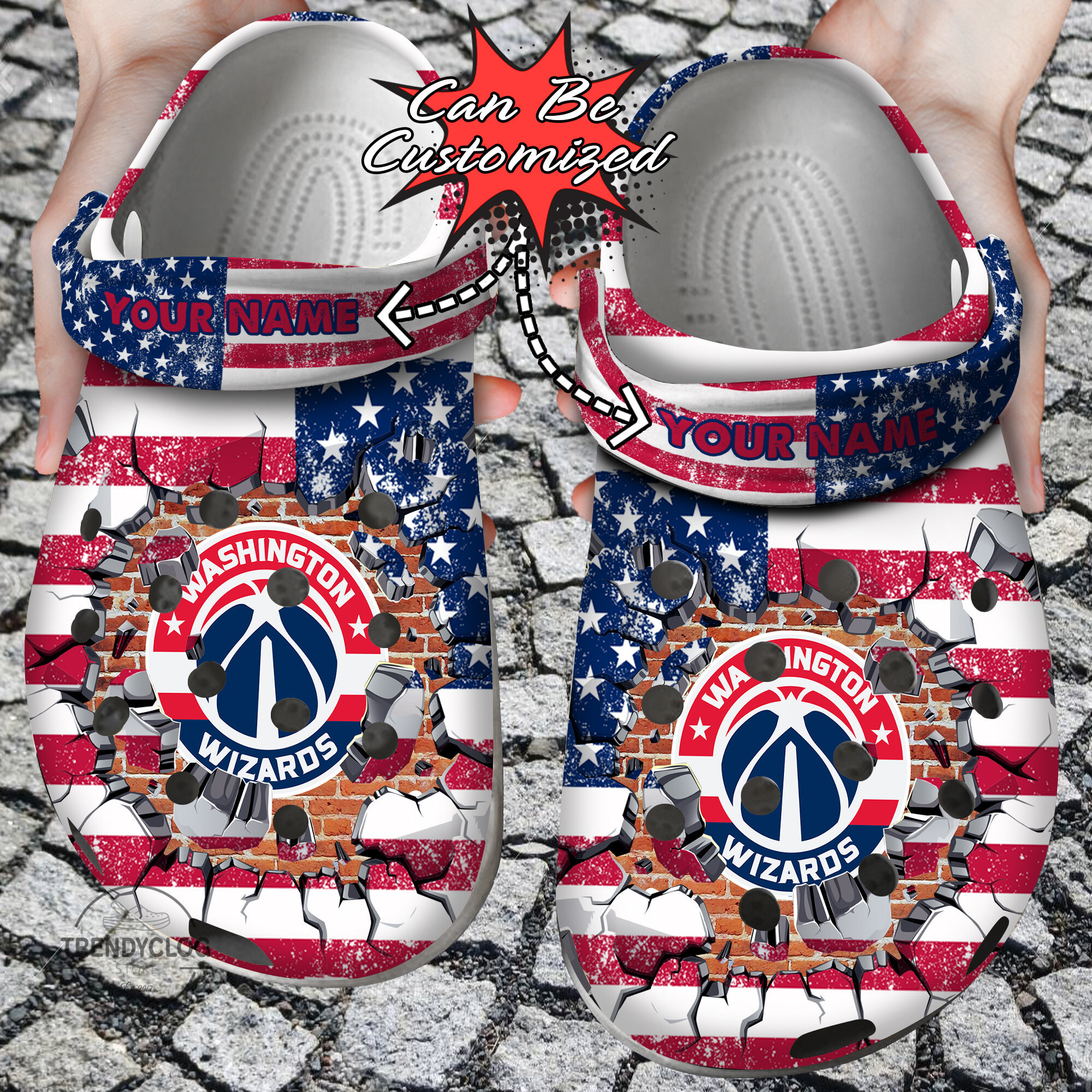 Merchidea Basketball Personalized WWizards American Flag Breaking Wall Clog Shoes