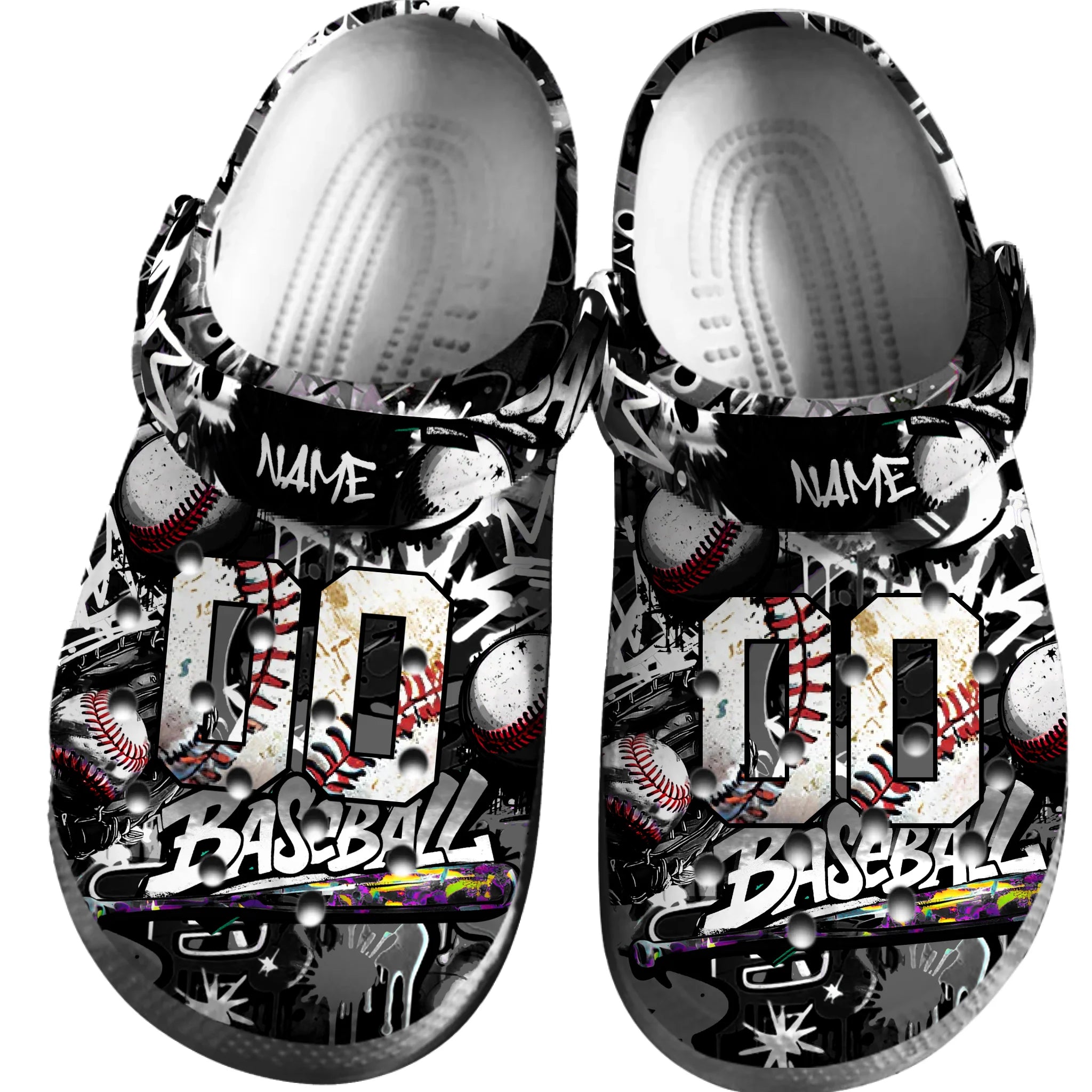 Merchidea Black Graffiti Baseball Sport Crocs Crocband Clogs Shoes Comfortable For Men Women and Kids