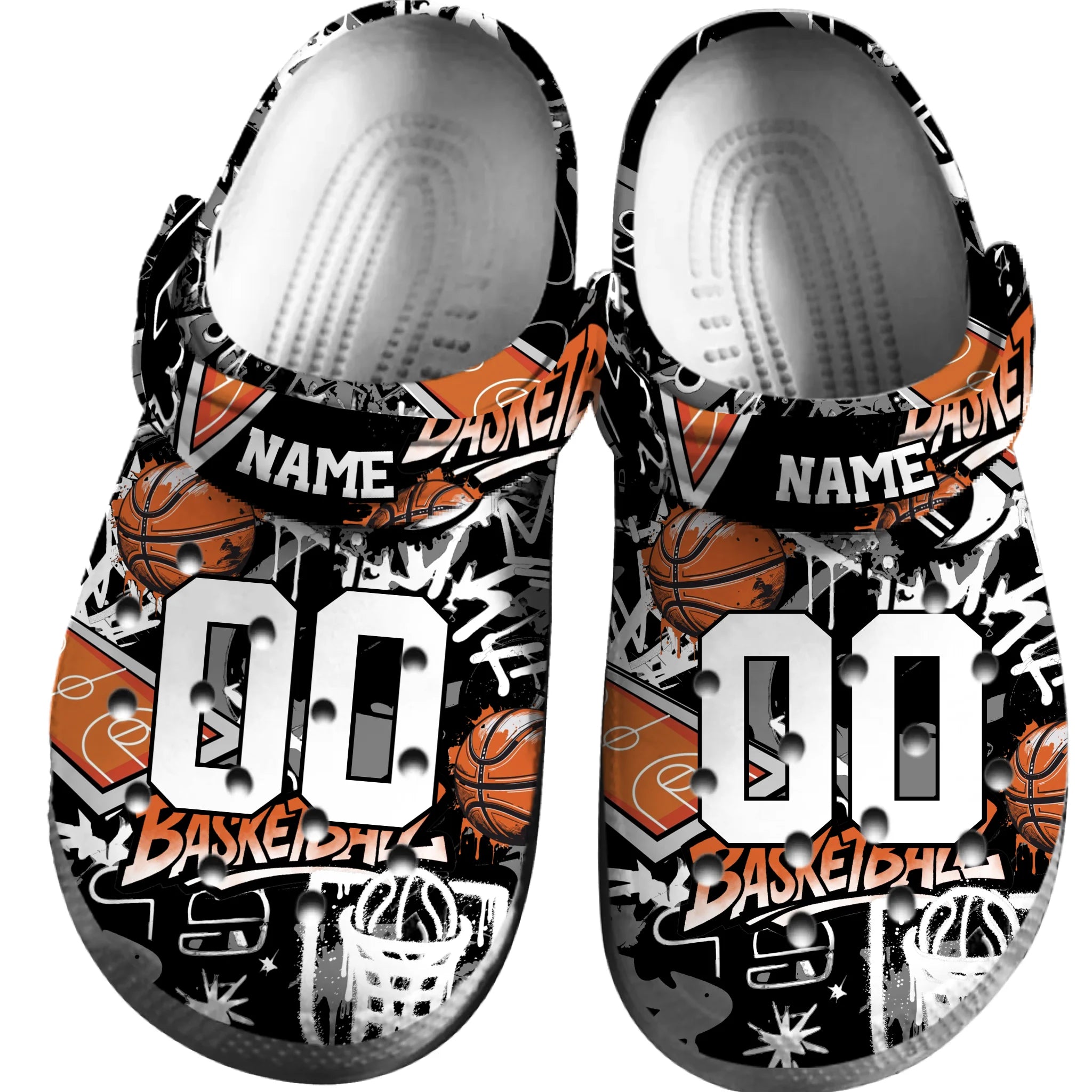 Merchidea Black Graffiti Basketball Sport Crocs Crocband Clogs Shoes Comfortable For Men Women and Kids