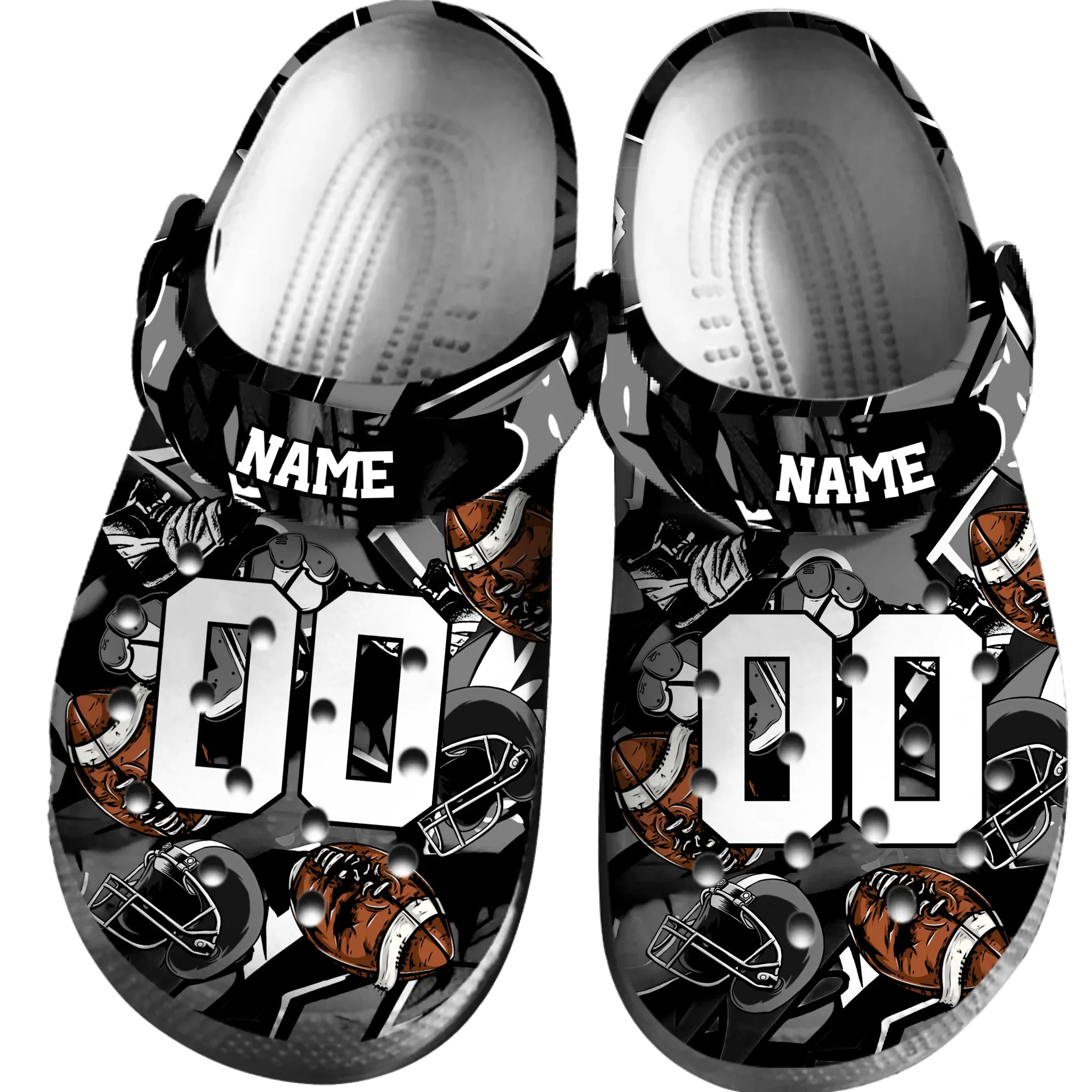 Merchidea Black Graffiti Football Sport Crocs Crocband Clogs Shoes Comfortable For Men Women and Kids