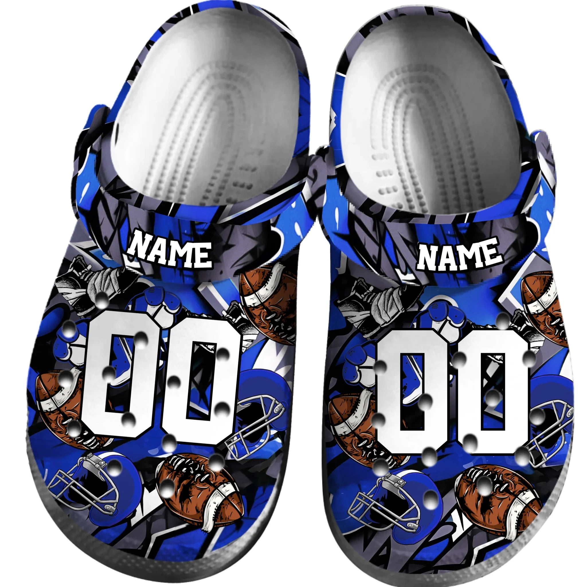 Merchidea Blue Graffiti Football Sport Crocs Crocband Clogs Shoes Comfortable For Men Women and Kids